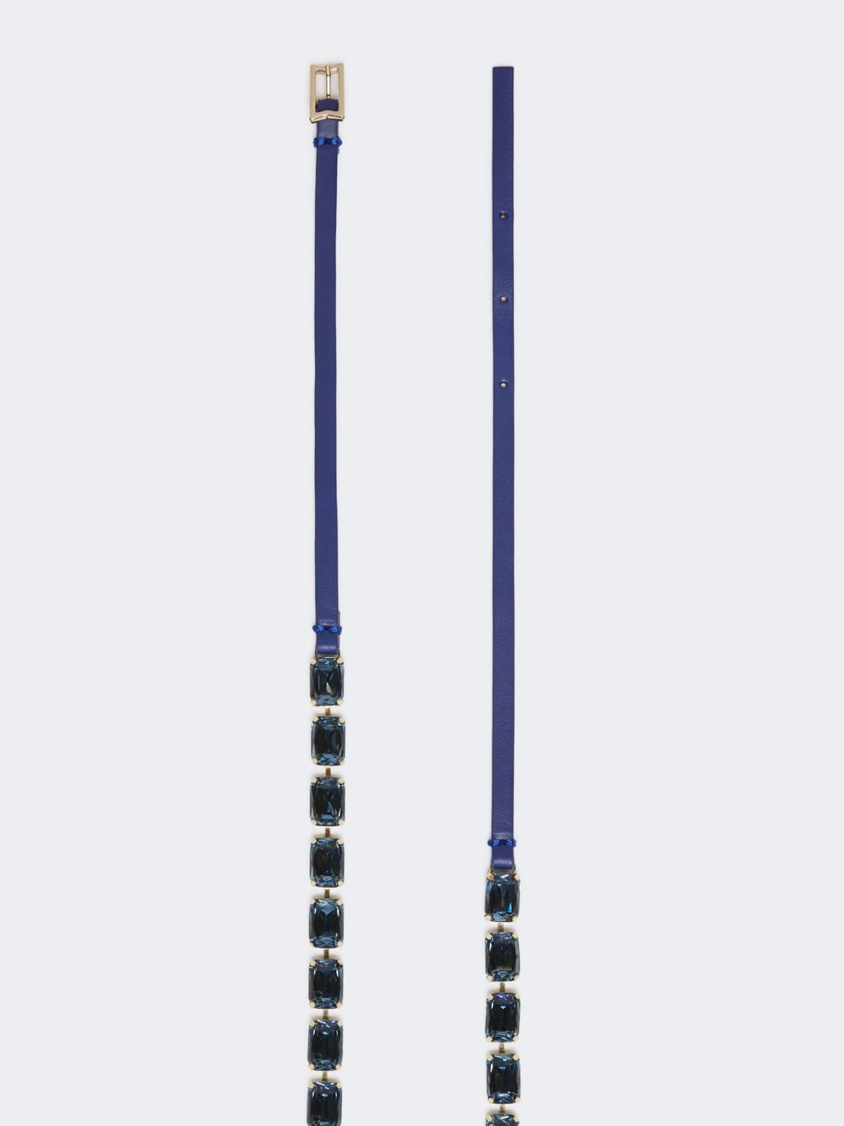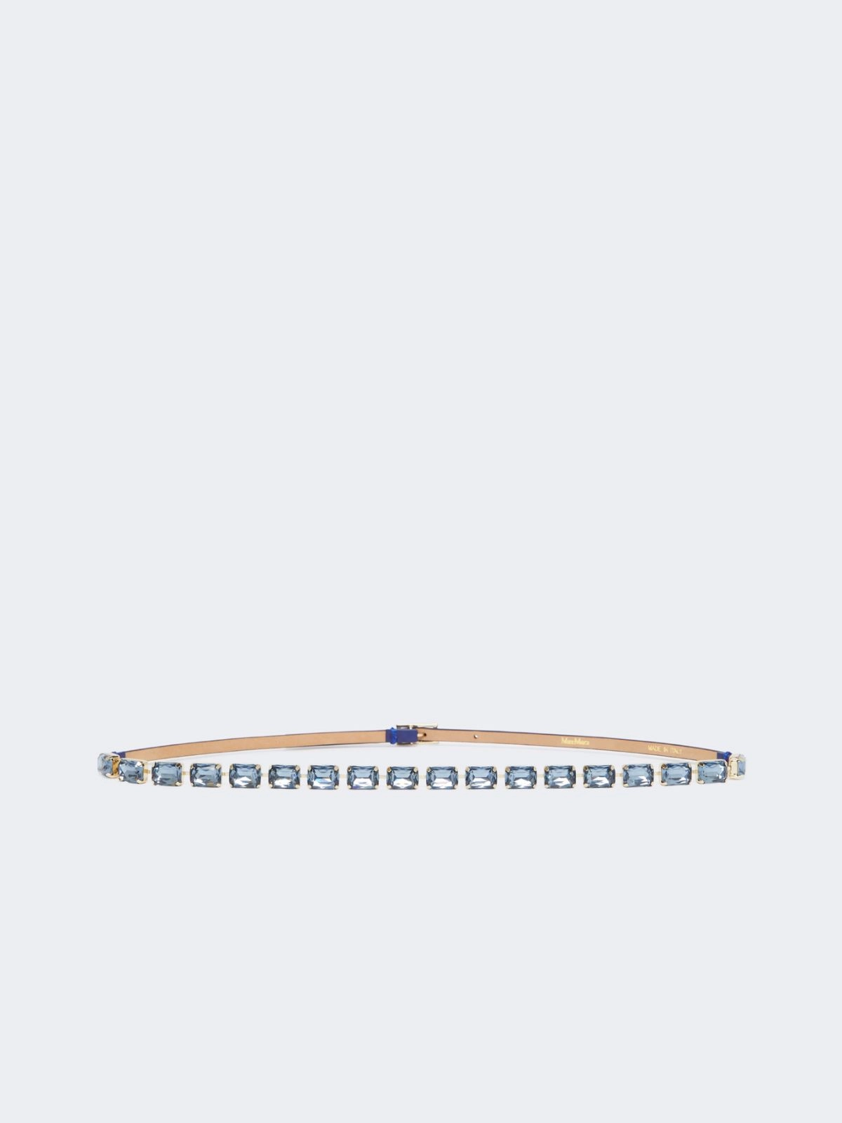 Jewel belt with ornate detail on the front composed of metal and glass elements.